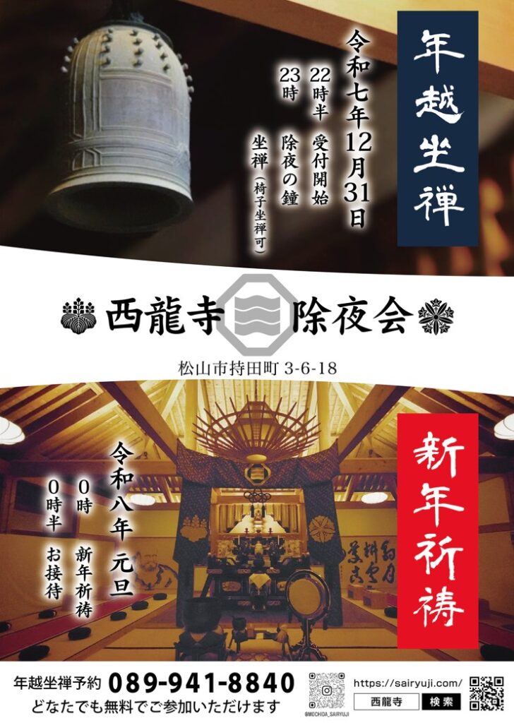 恒例の年末年始行事『西龍寺除夜会』を開催します。 ご予約はお電話で受け付けております。